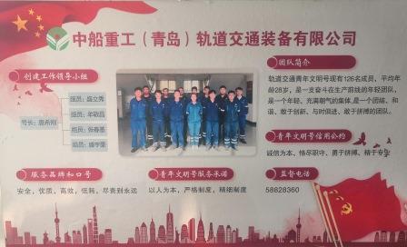2020年12月16日,中船重工(青島)軌道交通裝備有限公司青年團隊榮獲團市委頒發的2019-2020年度青島市“青年文明號”稱號。